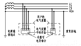 b) TN-C系統:整個系統的中性導體和保護導體是合一的(見圖1-2)。