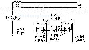 電源端有一點直接接地,電氣裝置的外露可電導部分通過中性導體或保護導體連接到此接地點。