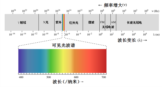 電磁波波譜,從左到右,波長(zhǎng)逐漸變長(zhǎng),光子的能量逐漸減小。